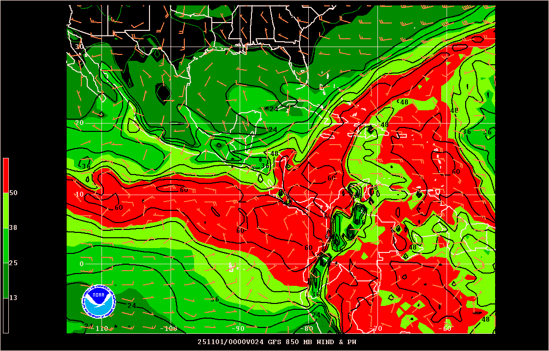 850mb Wind and PW